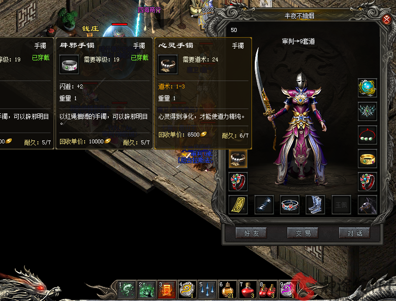 在早期神途中,屠龙、裁决以及后期在游戏出现的各种高级武器,当时还没有出现,所以炼狱成为了大家眼中的神器。炼狱的属性看起来还是比较可观的,攻击属性为0-25,当时没有任何一把武器的下限攻击能超过炼狱。可是随着版本的更新,井中月、裁决等高级武器鱼贯而出,从此炼狱跌下神坛。不过在当时,像裁决这样高级的武器并不是很容易得到的,老玩家应该都知道早期的爆率是极低的,想要获得一件祖玛装备都是一件比登天还难的事。